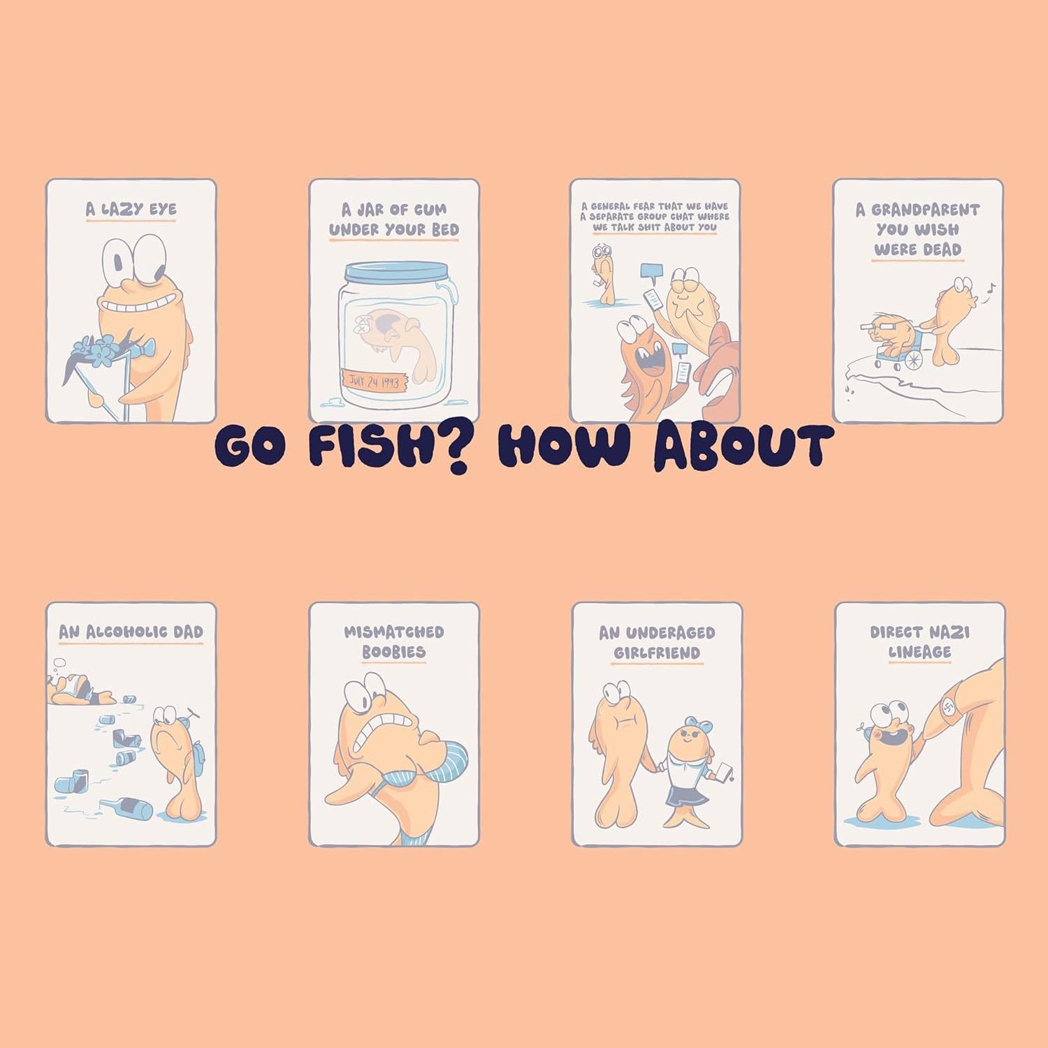 Go Fish? How about ! A hilarious adult spin on a classic card game. Go fishing for the embarrassing cards your friends hold in their hand and if you guess wrong!